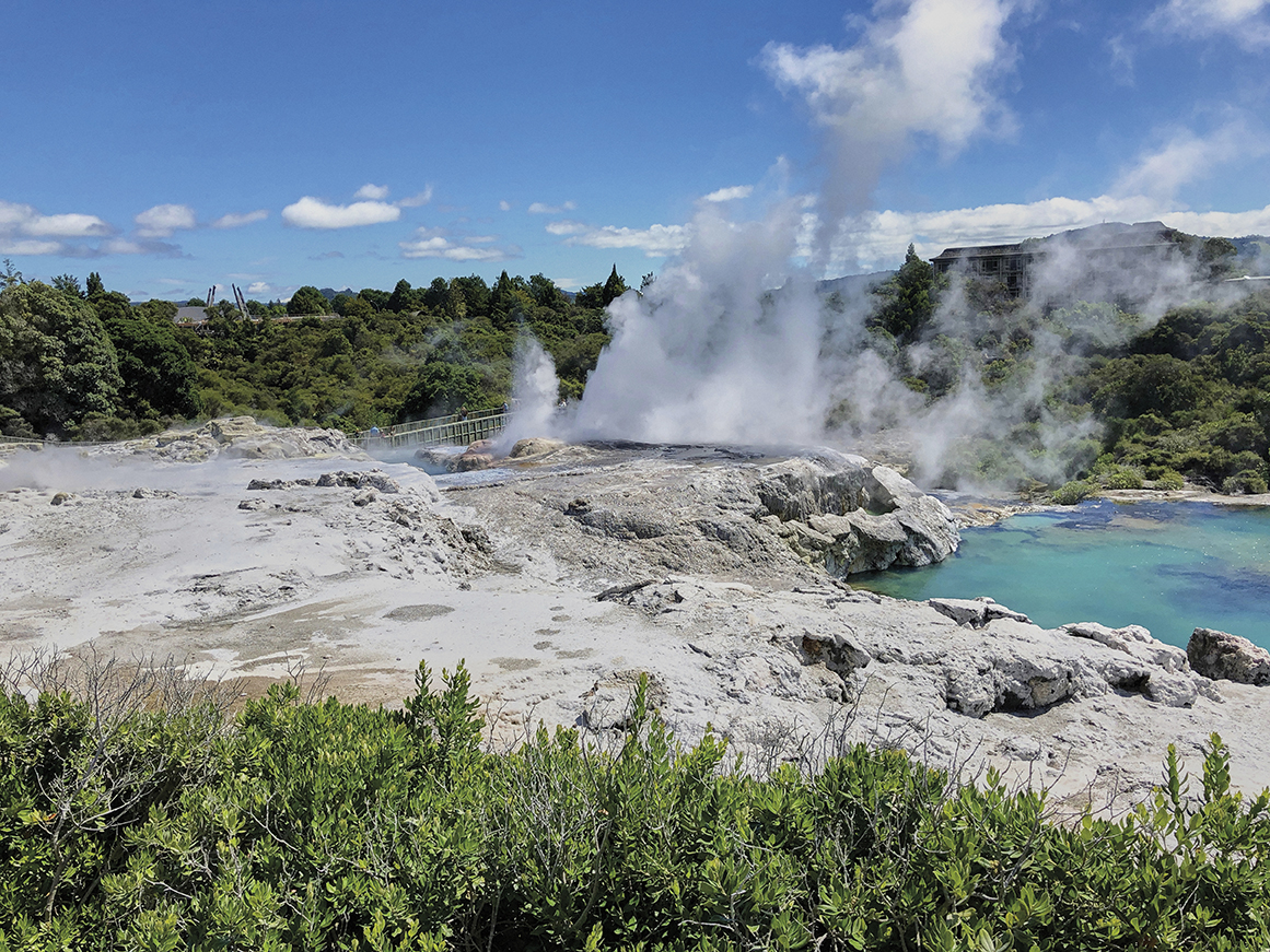 북섬에 있는 화산 고원의 심장부다. 가족이 함께 즐길 수 있는 이색 명소인 테 푸이아(Te Puia)를 추천한다. 요약하자면 지열 지대의 특성과 마오리족의 문화 체험 등 로토루아의 핵심을 묶은 복합 지대로, 시간당 한두 차례 연기와 함께 물이 솟구치는 포후투(Pōhutu) 간헐천 앞에선 탄성이 절로 나온다. 마치 자연이 벌이는 마법 쇼 같다.
