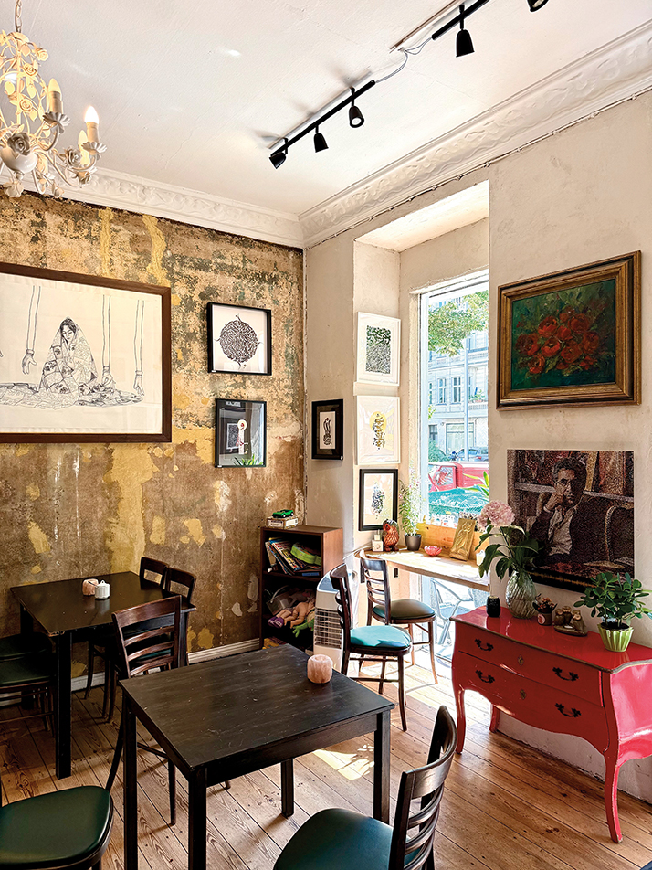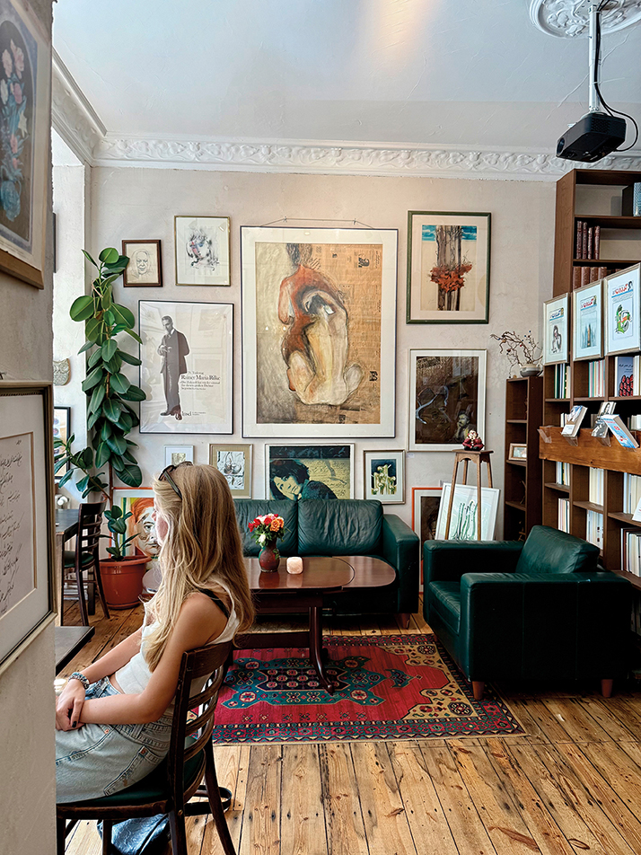 베를린 서쪽 칸트 슈트라세에 있는 페르시안 문학 전문 북 카페. 이란의 언론 탄압을 피해 1996년 독일로 탈출한 작가 아바스 마루피가 연 서점을 그의 사후, 딸이 2022년부터 카페 겸 서점으로 만들어 운영하고 있다. 카페 이름 ‘헤다야트’는 1930년대 이란의 대표 작가 이름으로, 서점의 로고도 헤다야트의 대표작 <눈먼 올빼미>에서 따왔다. 페르시아어와 독일어로 된 문학작품이 천장까지 빼곡히 꽂혀 있는 안쪽 테이블에서는 사람들이 자주 모임을 갖는다. 헤르만 헤세, 사뮈엘 베케트, 제임스 조이스 등 유명 작가들의 사진이 걸려 있는 창가 테이블에서 시간을 보내기 좋다.