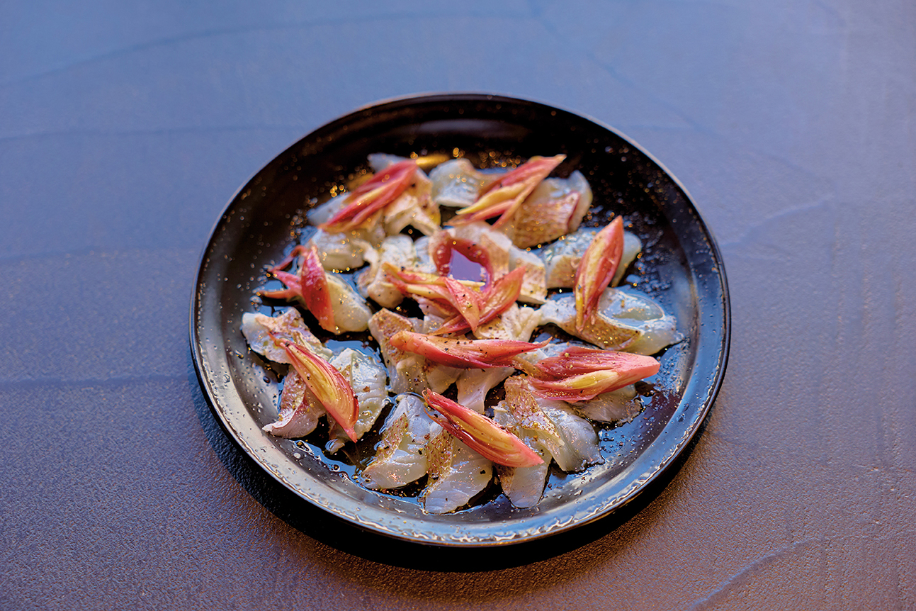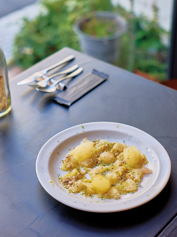 에히메현의 우치코라는 작은 시골 마을 출신인 후쿠오카 준 셰프는 어릴 적부터 도시를 동경했다. 동시에 생선을 사랑했다. 자연스레 생선을 만지는 셰프를 꿈꾼 그는 유럽을 여행하며 미식 경험을 쌓고, 나고야에서 12년간 일식과 프렌치를 배운 뒤 독립해 고향 인근 중심 도시 마쓰야마에 자리를 잡았다. 덕분에 마리오&라파엘라에선 인근 바다에서 나는 도미, 갯장어부터 보리멸, 전갱이, 정어리, 볼락, 학꽁치 같은 작은 어류로 만든 요리를 맛볼 수 있다. “세토내해는 물살이 잔잔하고 얕은 해역이라 플랑크톤이 풍부해 작은 어류가 무척 많아요. 철마다 나오는 작은 생선으로 요리하는 것을 좋아합니다. 메뉴는 일주일 단위로 바꿔요. 똑같은 걸 두 번 내는 게 지루하거든요.”