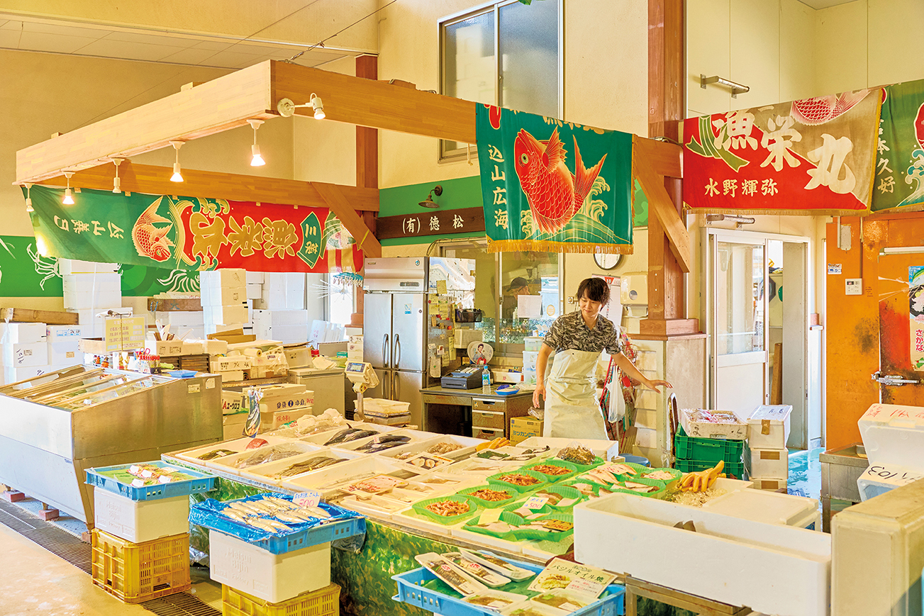 앞바다에서 막 건져 올린 도야 시장의 신선한 해산물. 아침 경매를 통해 들여온다.