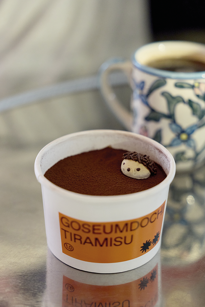 망원시장의 북적임에서 벗어나 한강 방향으로 걷다 보면, 망원정 인근 한적한 골목 끝자락에 다다른다. 감각적인 인테리어에 트렌디한 음악이 흐르는 이곳은 인디 뮤지션들의 참새 방앗간 같은 고슴도치 티라미수다. 주민들조차 “여기에 이런 곳이 있었어?”라고 반문할 만큼 비밀스러운 위치지만, 놀랍게도 벌써 2년째 자리를 지키고 있는 숨은 터줏대감이다. 음악을 사랑하는 이들이 알음알음 모여드는 아지트답게 공간을 채우는 플레이리스트도 남다르다. “숨겨진 비밀 장소를 찾은 기분이에요. 디저트 가게인데 음악이 너무 좋아서 나가기 싫으네요.” 부켓은 음악에 몸을 맡기며 시그너처 메뉴인 티라미수를 한 입 가득 떠 넣었다. 귀여운 고슴도치가 올라간 컵에 담겨 나오는 티라미수는 오리지널부터 말차, 얼그레이 등 다양한 맛이 있는데, 마스카르포네 치즈의 진한 풍미가 입안을 가득 채운다. 맛있는 디저트와 훌륭한 음악, 그리고 친구들에게 선물하기 좋은 귀여운 굿즈까지. 망원동 깊숙한 곳에서 완벽한 휴식을 선사하는 공간이다.