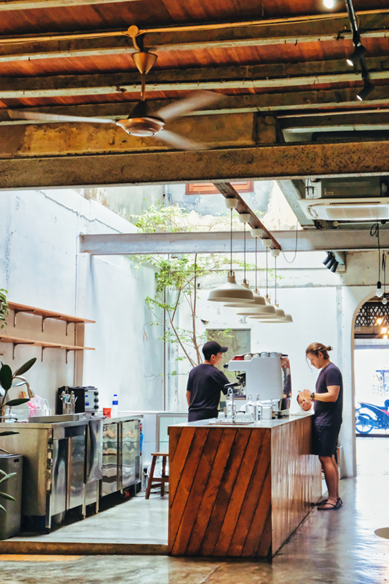조지타운 유네스코 세계문화유산 구역의 르부 출리아(Lebuh Chulia)에 위치한 이 카페는 원래 액자 제작소였다. 중국 풍수, 유럽 신고전주의, 말레이 전통이 뒤섞인 건축물은 최소한의 복원만 거쳐 현재 모습을 갖췄다. 미니멀한 내부 공간과 달리 벗겨진 벽, 노출 콘크리트, 전선 등 세월이 그대로 드러난 안뜰에는 자연광과 함께 고양이들이 손님을 기다리고 있다. 노스탤지어로 가득한 페낭 유네스코 세계문화유산 구역에서 미니멀하면서도 감각적인 스페셜티 커피를 마실 수 있는 공간으로, 페낭의 과거와 현재를 동시에 느낄 수 있는 거점이다.