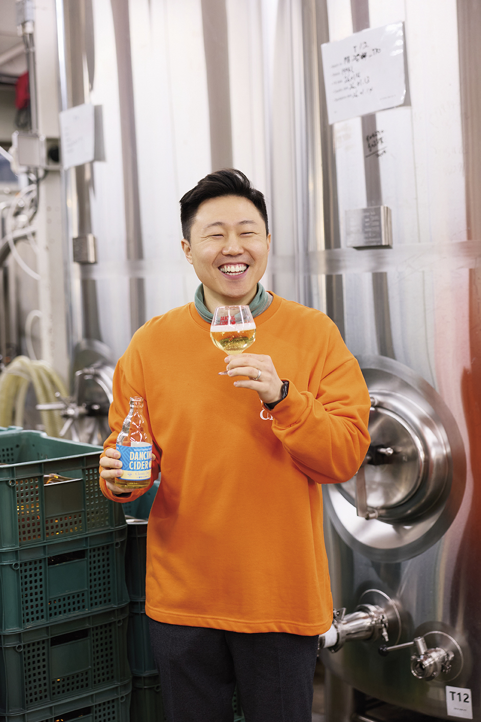 2013년, 애플사이더와의 첫 만남은 지금도 생생해요. 미국 유학 시절 친구들이 운영하는 보스턴 양조장에서 맛본 애플사이더는 신선한 충격이었어요. 당시 한국에는 과즙으로 만든 술이 생소했고, 미국에서도 메인스트림은 아니었기에 그 독특한 맛이 신기했어요. 동시에 국내로 올리브오일이나 아보카도 같은 다양한 식자재가 수입되는 걸 보며, 한국 F&B 시장에도 변화가 생길 거라 직감했죠. 2018년, 수도권과 멀지 않고 사과로 유명한 충주에서 댄싱사이더를 설립했어요. 유럽이나 미국의 애플사이더와 차별화된, 가장 한국적인 애플사이더를 빚기 위해 충주에 자리 잡은 건 당연한 결정이었죠. 그간 국내에 애플사이더 양조장이 없던 이유는 신맛이 강조된 사이더를 만들기엔 한국 사과가 달다는 편견 때문이었어요. 하지만 부사로 단맛을 강조한 달콤한 사이더를 만들면 될 일이었죠. 구연산으로 산도의 밸런스를 맞출 수 있고요. 댄싱사이더의 대표 제품인 ‘스윗마마’는 그렇게 탄생했어요. 증류주의 인기에 발맞춰 선보인 사과 브랜디 ‘애플스피릿’, 라벤더와 엘더플라워를 더한 드라이 사과 와인 ‘화사’ 등 현재 충주 사과로 다채로운 라인업을 선보이고 있습니다. 댄싱사이더는 개성을 자유롭게 표현하는 크래프트 문화를 지향하고 술을 통해 일상의 유쾌함을 전하는 것을 목표로 합니다. 충주에 오면 댄싱사이더 양조장이 있는 중앙탑사적공원에서 시간을 보낸 뒤 미국식 바비큐 레스토랑 밍거스바비큐에서 애플사이더를 곁들여보세요. 충주라는 지역과 크래프트 문화를 가장 가까이에서 느낄 수 있는 저만의 방법입니다.
