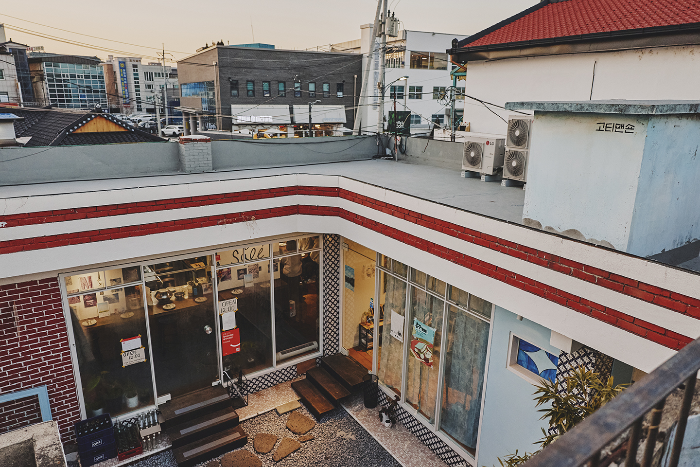 1969년부터 관아골을 지켜온 염소탕집 자리에 6개의 라이프스타일 상점이 일제히 들어섰다. 화덕 피자 전문점 ‘예반화덕’을 비롯해 이탤리언 다이닝 ‘핀치오살레’, 김치짜글이 전문점 ‘짜글옥’, 독립서점 ‘책방, 궤’, 무인 문구점 ‘우디 로그’, 향 브랜드 스튜디오 ‘쁘레땅’이 그 주인공이다. 지역관리회사 보탬플러스가 오래된 건물을 매입해 탄생시킨 고티맨숀은 현재 이들의 새로운 터전이자 지역의 중심지로 운영되고 있다. 보탬플러스 박진영 대표는 ‘관아골에 더 많은 창업가와 창작자가 들어왔으면 하는 마음, 관아골의 정취를 더 많은 사람이 더 오래 체류하며 누리길 바라는 마음’에서 고티맨숀을 기획했다. 인근 상가보다 저렴한 임대료를 제공하는 조건은 단 하나. 입점 업체들은 매달 담장마켓 같은 행사에 참여하거나 시민을 위한 창업 클래스를 마련하는 등 지역사회를 위한 활동을 해야 한다. 마을 일이라면 두 팔을 걷어붙이고 나서는 동네 이웃 덕분에 관아골에서 기획하는 모든 콘텐츠에는 외부 용역이 필요 없다고. 음향부터 디자인, 건축, 영상까지 마을 안에서 해결이 가능하다. 고티맨숀 한편에는 이 건물의 옛 사진을 전시해놓은 공간을 마련했다. 박 대표는 “염소탕집의 아드님이 어린 시절의 기억을 간직하고 싶다고 전해준 자료로 전시관을 만들었어요”라고 설명한다. 시간의 켜가 쌓인 기록 앞에 서면, 옛것의 역사를 보존하며 오늘날의 가치를 더하는 것이 도시재생의 본질임을 체감하게 될 것이다.