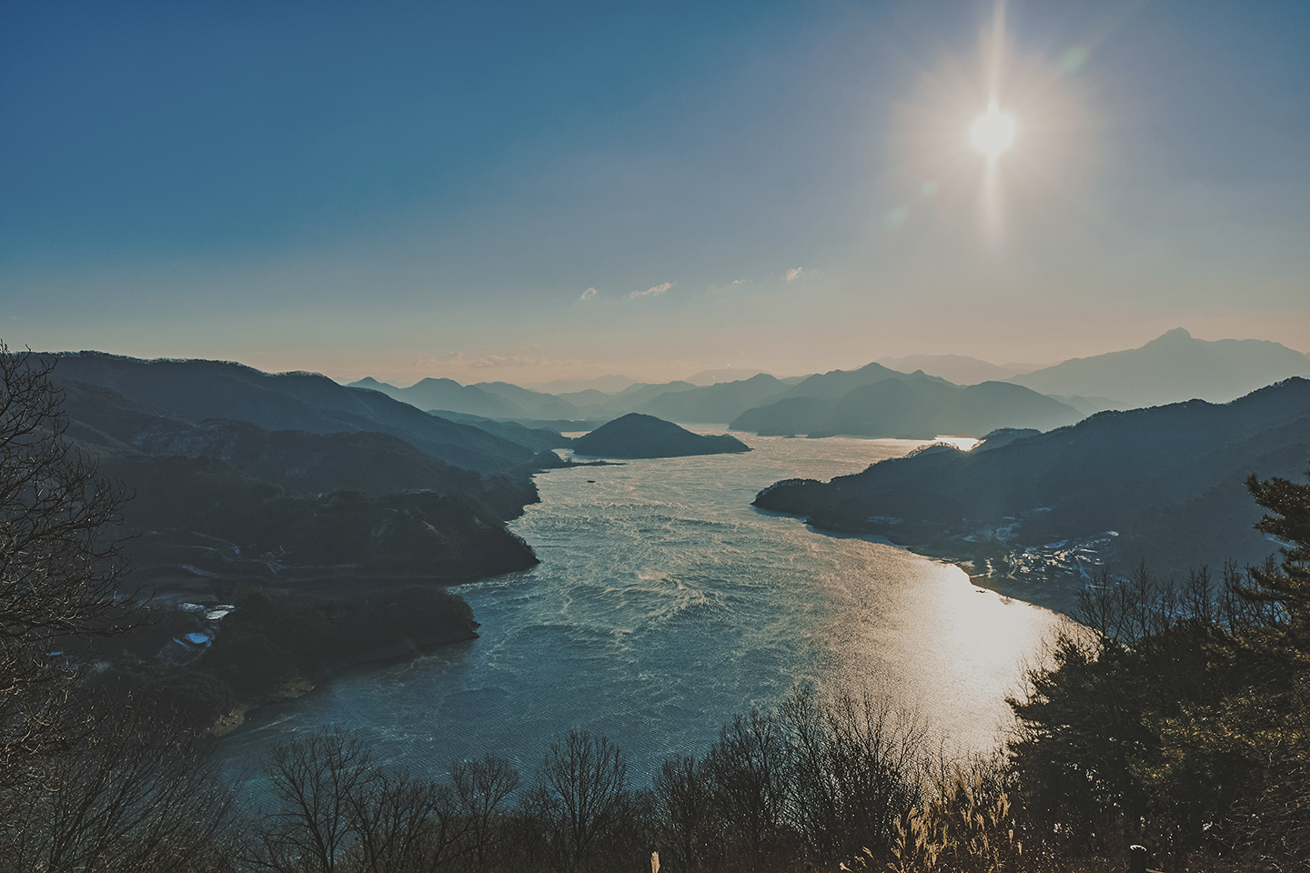 충주 시내 어디서든 차로 10분만 가면 내륙의 바다라 불리는 충주호가 그 압도적인 자태를 드러낸다. 깊이와 넓이가 남달라 호수를 따라 굽이굽이 이어지는 길은 끝이 보이지 않는다. 1985년 충주댐 건설로 조성된 이 거대한 인공 호수는 댐이 위치한 종민동과 동량면 사이의 계곡에서 시작해 단양군 도담삼봉까지 약 97.2km²의 광활한 면적을 메우고 있다. 충주호를 즐기는 방법은 다양하지만, 호수를 가까이에서 마주하고 싶다면 심항산(해발 약 337m)으로 향해보자. 이른 아침부터 등산객으로 문전성시를 이루는 코스는 약 3.8km에 걸쳐 조성된 종댕이길이다. 1시간 반 정도 가볍게 숲길을 걷다 보면 ‘산 많고 물 좋은’ 충주의 속살을 고스란히 들여다볼 수 있다. 주차장에서 정상까지 오르는 코스는 단 30분. 초보자도 부담 없이 도전할 수 있는 완만한 코스지만, 풍경의 감동은 등산 난도에 비례하지 않는다. 정상에 서면 굽이치는 푸른 산세와 어우러진 호수의 모양이 마치 한반도 지형처럼 펼쳐지는 장관을 마주하게 된다. 인근 계명산 자연휴양림에서도 숲과 호수를 동시에 만끽할 수 있다.